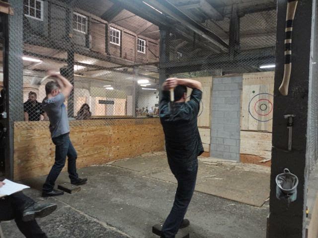 Even though Chris won the tournament, it was still Clare’s birthday and she was the one who got to throw the big axe. Which was very exciting. Look how happy she looks. That is one of our great teachers, whose name I am forgetting. If you are interested in this kind of fun, you should try it. You can find BATL here.