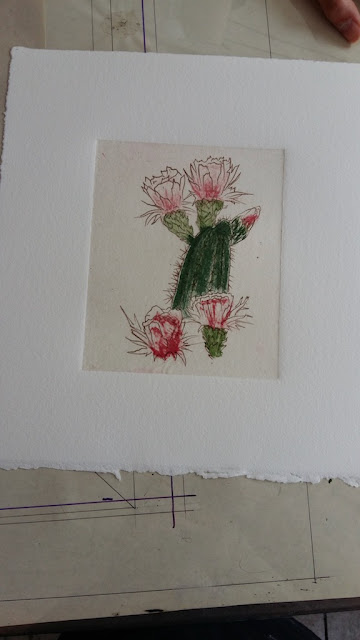This is our last formal meeting as part of the mentorship program. Heather arrives and gets to work cutting her printed gampi pieces to prepare for chine collé. Her 4 colour registration went very well, especially because the plate and the paper were semi-transparent. I get the feeling that Heather is a meticulous and precise printmaker who has had to let go of her strict habits for this print, not so much with the new technique but definitely in working with the gampi. This last part of the project proves more difficult but she moves through with a willingness to screw up a few pieces for the sake of learning. In the end, the work is lovely and Heather and I both feel it was a worthwhile accomplishment for her. Of course the teacher always learns a bit on the journey with a new student and I am grateful for the experience to work with such a talented and positive individual.