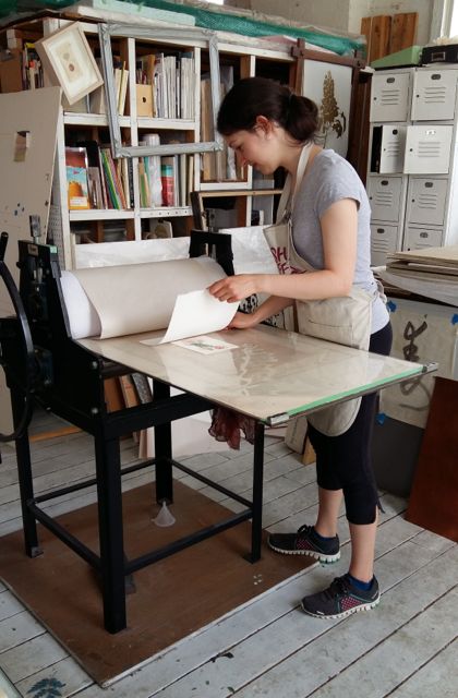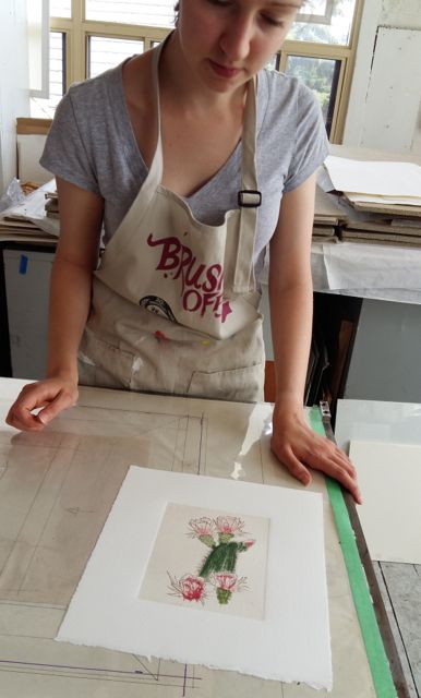 All the while, we are chatting about the many aspects of showing, selling, promoting print work and the application process for shows, residencies and grants. I pass on some valuable knowledge that I received years ago when I found myself discouraged to get my first refusal letter after spending much time on the preparation of an application. I was told that once you prepare a good application, duplicate it and send it out everywhere. If you send out 10 proposals or applications, you might hear back from 3 and might have 1 successful. If you stick to this practice, you won’t find yourself so attached to one call for entry and then completely shattered when it is not accepted. Another good thing to remember when applying for shows (grants, etc.) is that the jury are one group of people who have come together to find agreement in choosing. What one group chooses on one occasion is not the same as a slightly different group on another occasion. So it may not be that your proposal itself is unsuccessful but simply the time and place and within the context of the other applicants, etc. Try, try again. Of course it is important to have let someone whose opinion you appreciate look over your applications first!