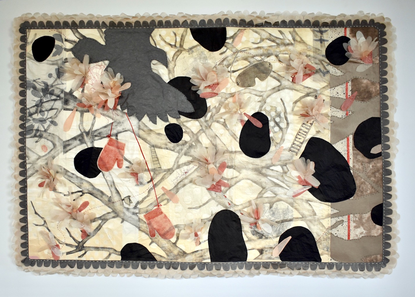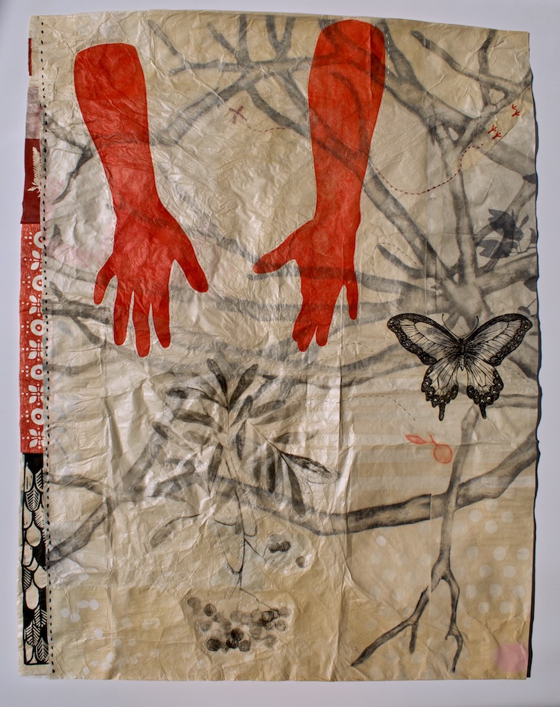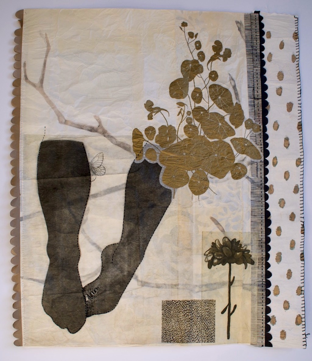 Tammy is inspired by the botanical world and its many examples of imperfection and impermanence. From this viewpoint, she uses traditional textile techniques to manipulate her etchings and monoprints on handmade paper, creating renditions of functional textile pieces.  Items whose utilitarian value might be lessened as they become threadbare and fragile through use are thus transformed into artifacts of shared memories and the passage of time.