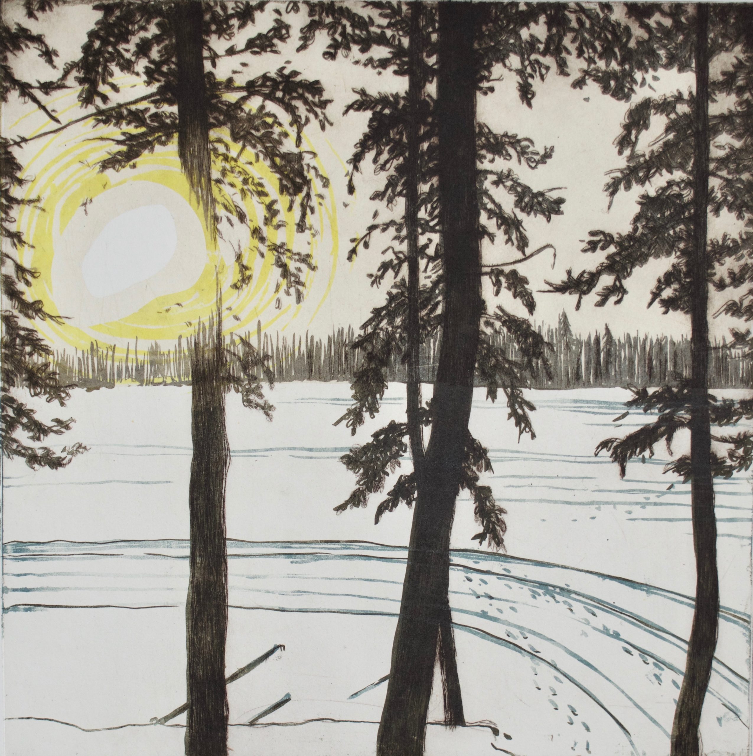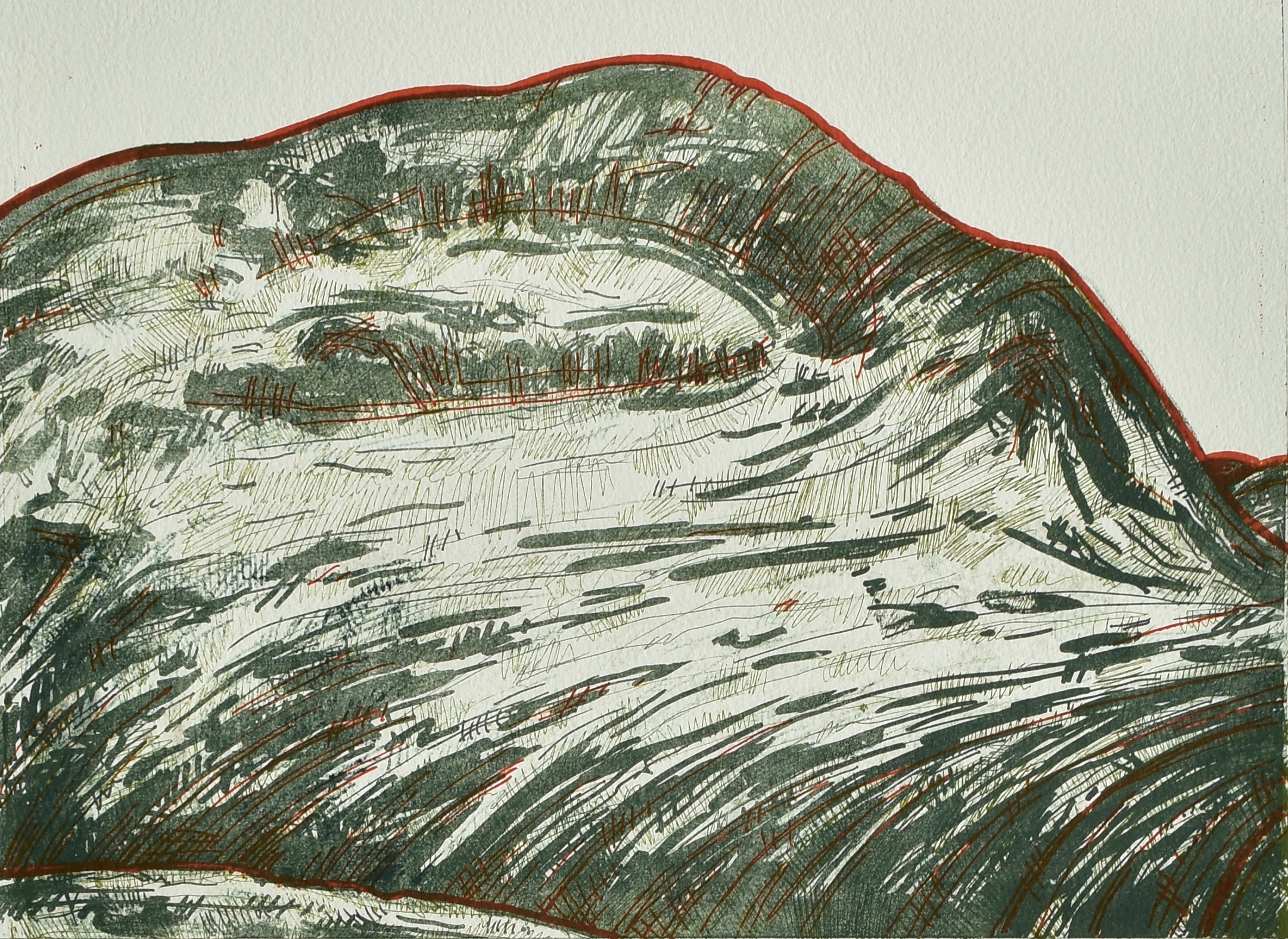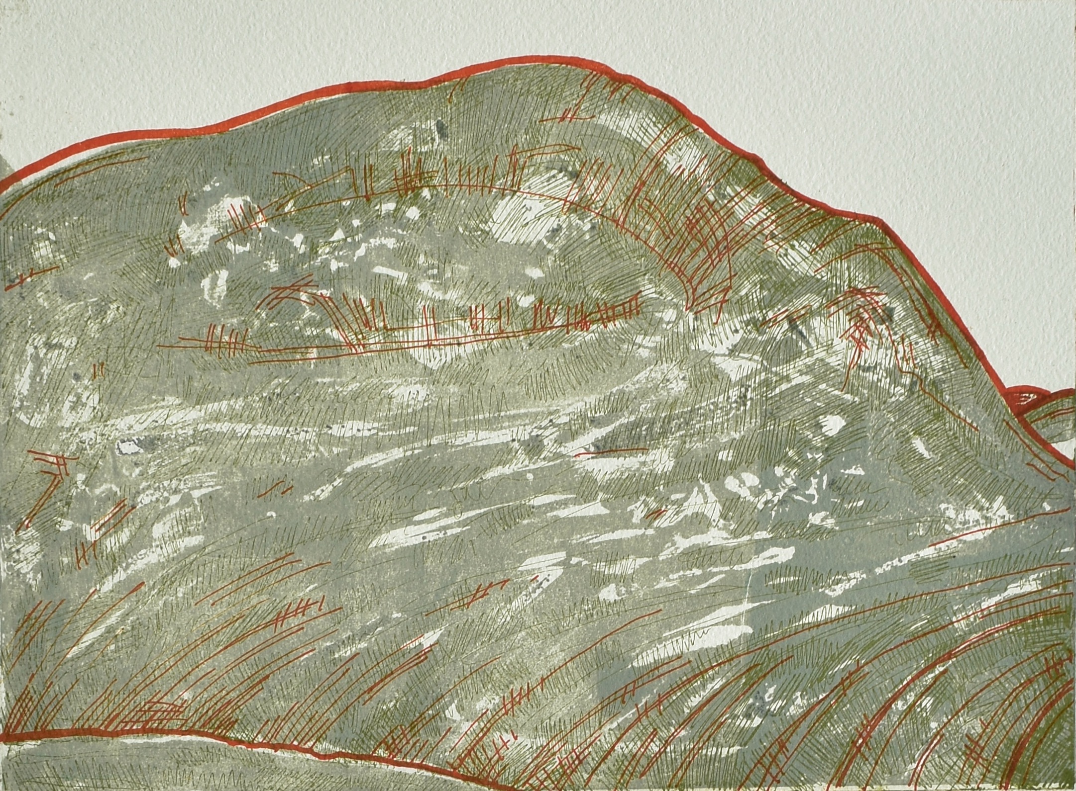 Objectively, the works stand as sensitive and thoughtful interpretations of nature, employing varied print techniques to render the expansive sensations and rugged beauty of a landscape, or the more intimate investigation of a botanical study. More subjectively, each is coloured with subtle emotional undercurrents that touch alternately on fear and melancholy, admiration and wonder, and hint at the artist’s desire, and the universal impulse, to make sense of one’s place within these intertwined narratives.